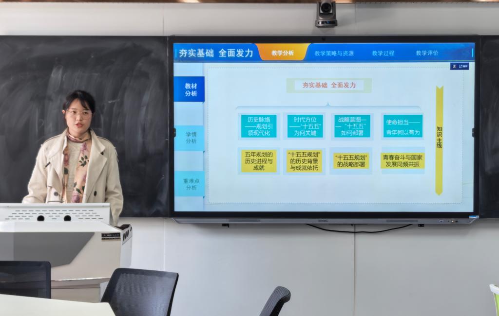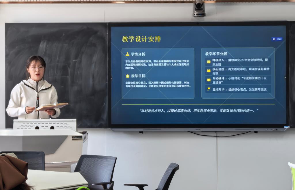 备课会上,任课教师就专题一“乘势而上、接续推进中国式现代化”进行说课展示。各位教师紧扣专题核心要义,立足教学实际,系统阐述教学思路与整体设计,精准梳理教学重点、难点与突破路径,结合地方发展、行业实践与青年成长分享鲜活教学案例,围绕如何讲清“十五五”规划的历史沿革、历史方位、战略部署和根本保证与青年使命展开充分阐释,为专题教学提供了可借鉴、可落地的教学方案。