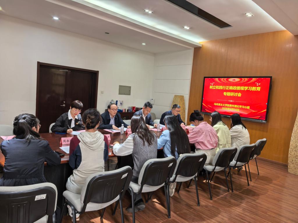 为深入学习贯彻习近平总书记关于树立和践行正确政绩观的重要论述,紧扣立德树人根本任务,引导青年教师以实干担当服务学院“十五五”高质量发展,4月16日,马克思主义学院在图书馆三楼会议室组织第一季度青年理论学习小组集体学习活动。党委书记孙光伟出席并作指导,党委宣传部负责人、马克思主义学院班子成员、学习小组全体青年教师参加。